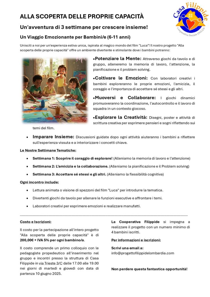 Sarà un’esperienza speciale che guiderà i bambini alla scoperta delle proprie capacità emotive e creative.